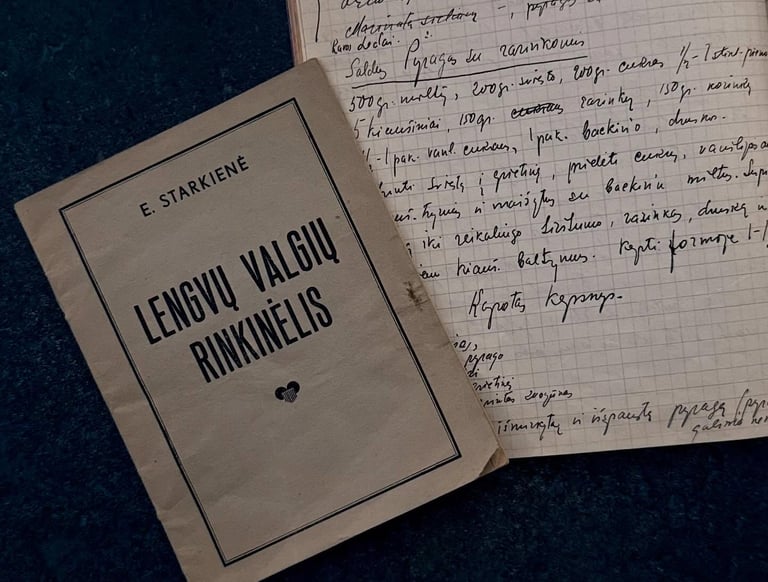 In the photo – Elena Starkienė’s “Lengvų valgių rinkinėlis” and her handwritten recipes. Elena Starkienė was my great-grandmother. I also have more of her manuscripts and books. I’ve often been asked whether I would ever cook from her recipes. Now I have an answer – yes.